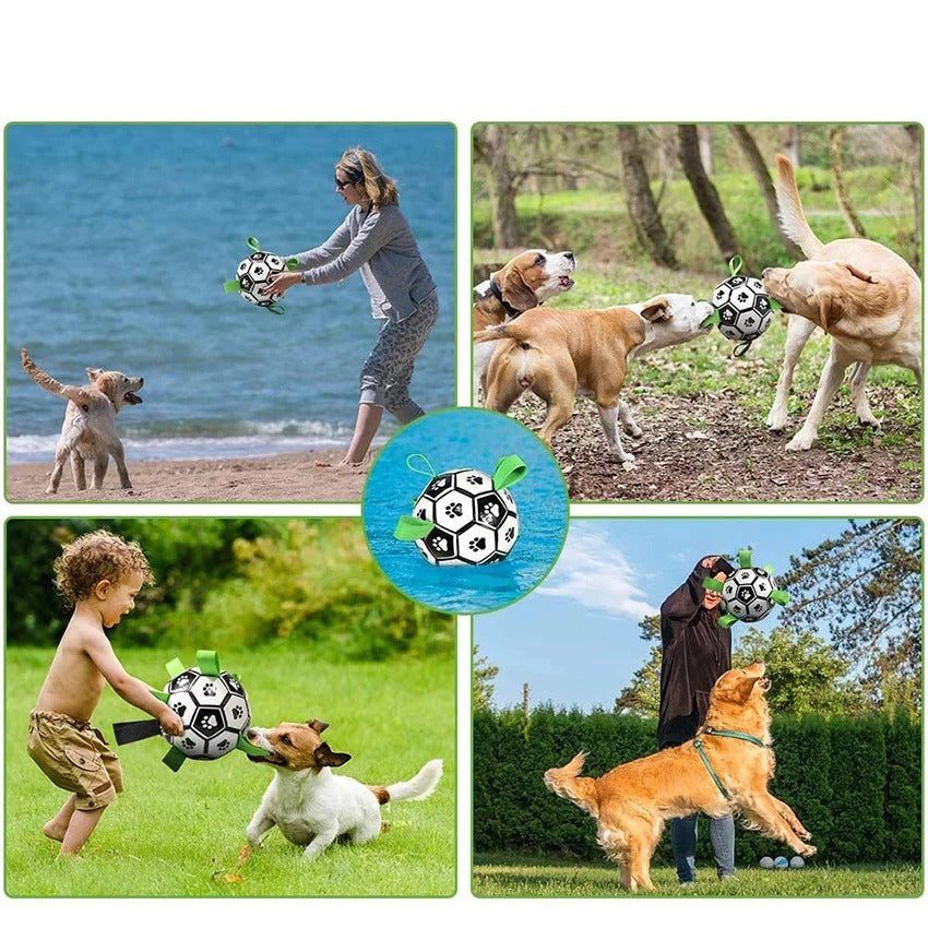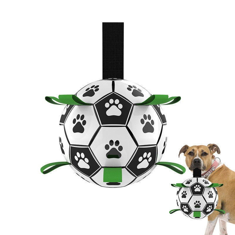 Notre ballon dispose de jolis motifs avec imprimés pattes de chien. Il possède également de petites manches vertes pour que votre chien puisse facilement le transporter avec sa gueule. De cette manière, votre chien profitera au maximum de son ballon, que ce soit pour lui courir après ou le porter d'un endroit à un autre. Ce ballon est plus qu’un simple jouet, c'est un moyen pour vous de s'amuser avec votre toutou. À l'intérieur comme à l'extérieur, il garantit des moments heureux et amusants pour votre chien.