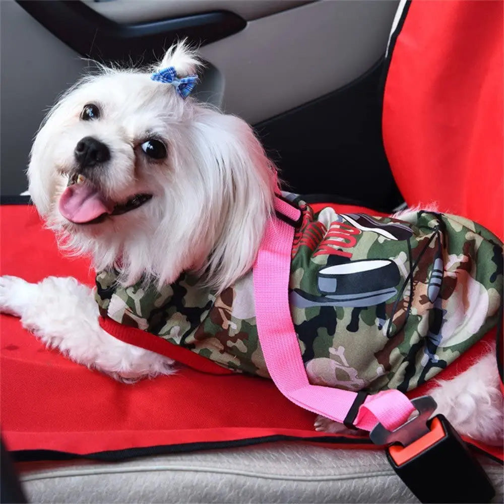 On entend souvent des chiens victimes d'accidents de voiture pour cause de freinage brusque. Pour éviter cela, notre ceinture de sécurité pour chien en voiture est l'accessoire dont vous aurez besoin, pour assurer la sécurité de votre animal en voiture. L'autre extrémité se fixe facilement au harnais ou au collier de votre chien et l'autre sur la boucle de la ceinture de sécurité de votre voiture.