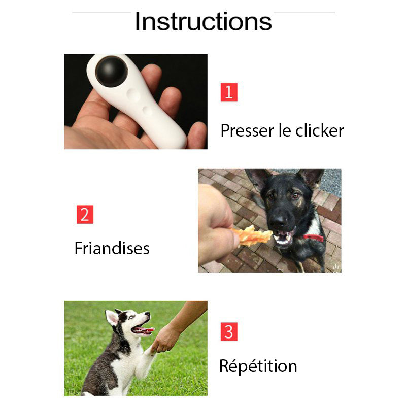 Vous n'aurez qu'à cliquer sur le bouton à chaque bonne action de votre chien de façon répétitive pour un bon dressage.