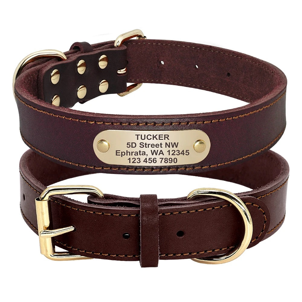 Choisir notre collier pour chien en cuir personnalisé pour votre chien, c'est investir dans un accessoire qui allie parfaitement style et fonctionnalité. Le style intemporel du cuir brun s'accorde parfaitement avec la robustesse de la plaque en acier inoxydable.