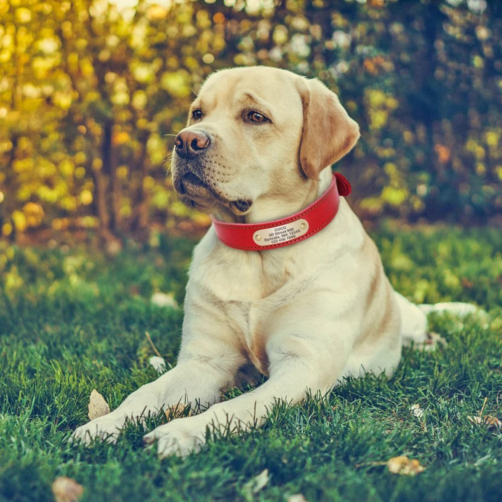 Ce qui rend ce collier vraiment spécial, c'est sa plaque en acier inoxydable. Gravée à la demande, elle affirmera la touche personnalisée du collier. Vous pouvez effectivement mettre le prénom de votre chien, ou toute information que vous voulez avec notre collier pour chien personnalisé avec prénom.