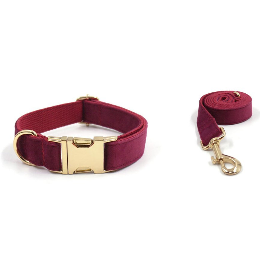 Offrez à votre chien un look élégant et intemporel avec notre ensemble collier-laisse pour chien personnalisé en velours bordeaux, parfaitement assorti avec sa laisse. Cet ensemble chic et sophistiqué, est parfait pour vos promenades en ville, vos événements spéciaux ou simplement pour ajouter un peu de glamour au quotidien de votre compagnon.