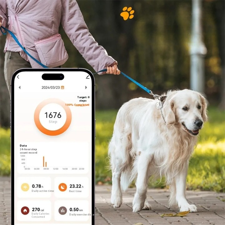La fonction GPS intégrée vous permet de suivre en temps réel les déplacements de votre chien via l’application depuis votre téléphone.