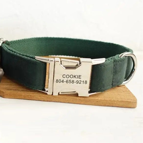 Offrez à votre chien un accessoire stylé avec notre collier personnalisable. Conçu pour être le plus confortable possible pour votre chien, ce collier est doux au toucher. Il est idéal pour les promenades quotidiennes. Disponible dans une couleur verte élégante, il ajoute une touche de style particulier à votre chien, quel que soit son pelage. Et les finitions métalliques appuient ce style de manière très chic.