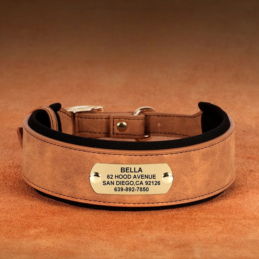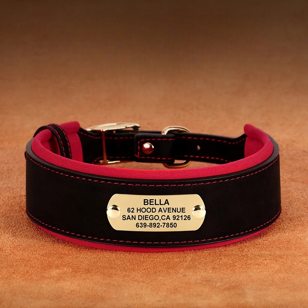 La plaque gravée permet d’indiquer un nom et un numéro de téléphone en cas de fugue ou de perte.