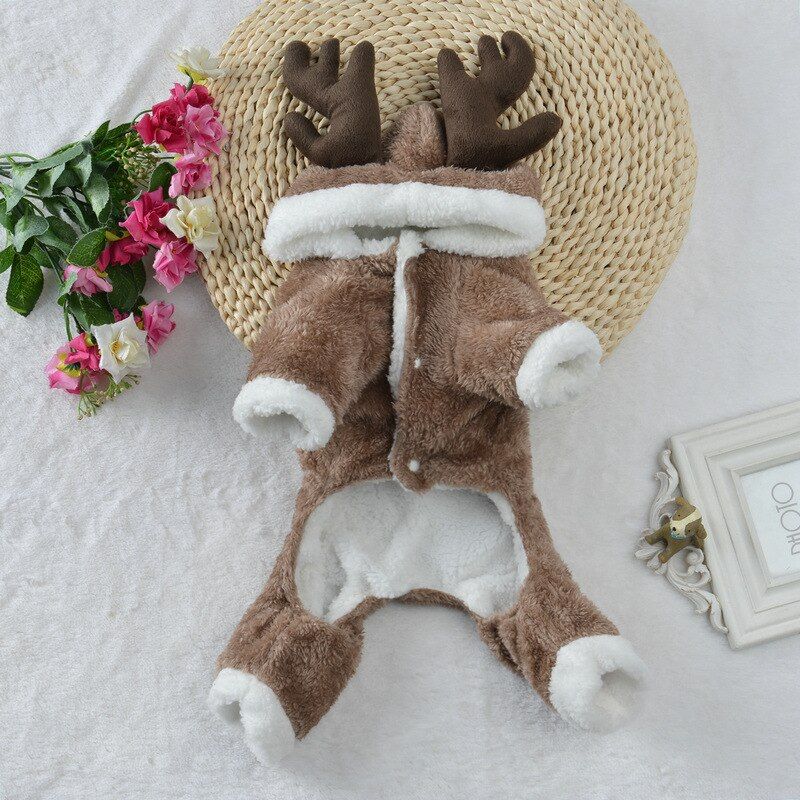 Grâce à notre adorable costume de renne pour chien, vous allez célébrer la saison des fêtes avec style. Parfait pour Noël, ce costume transformera votre fidèle ami en un joyeux petit renne. Ce costume pour chien est l'ajout parfait pour les photos de famille, il est composé d'une combinaison en marron et blanc et complété par une capuche ornée de bois de renne.
