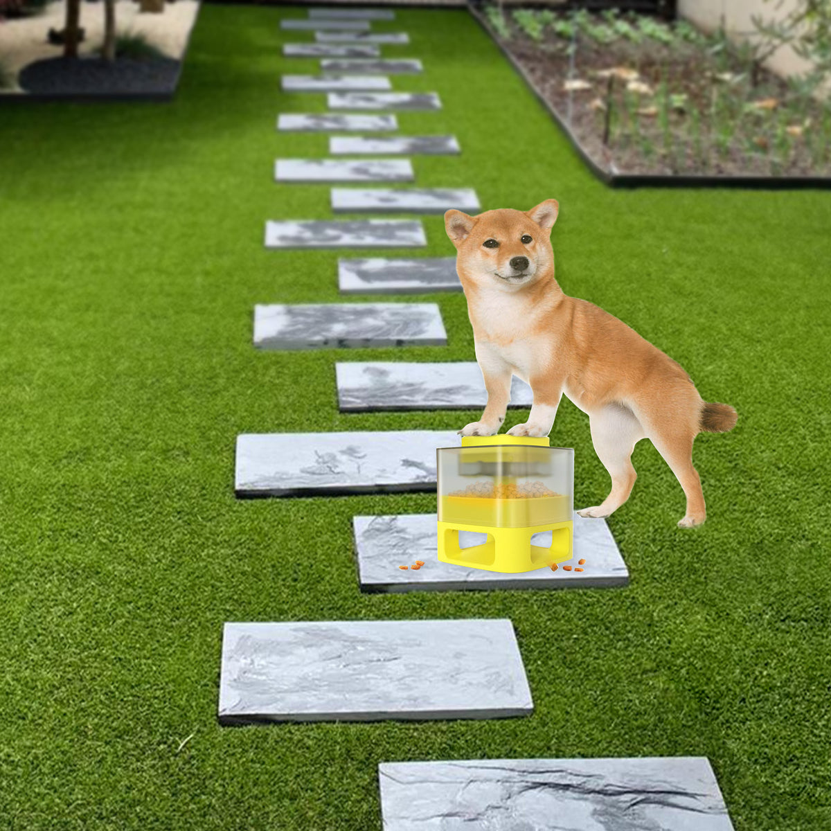 La possibilité de ralentir le rythme d'alimentation quotidien de votre chien est l'un des atouts majeurs de notre distributeur de croquettes. Lorsque le chien appuie pour faire tomber les croquettes, celles-ci s'éparpillent tout autour en plusieurs petites quantités. Cela obligera votre chien à ralentir son rythme en les mangeant.