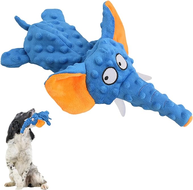 Avec un design en forme d’éléphant qui attire facilement votre chien, notre peluche est fabriquée avec un tissu en maille avec différentes garnitures. De plus, quand votre toutou joue avec notre doudou pour chien, celui-ci produit un son. Cela rend le jouet encore plus intéressant pour votre chien.