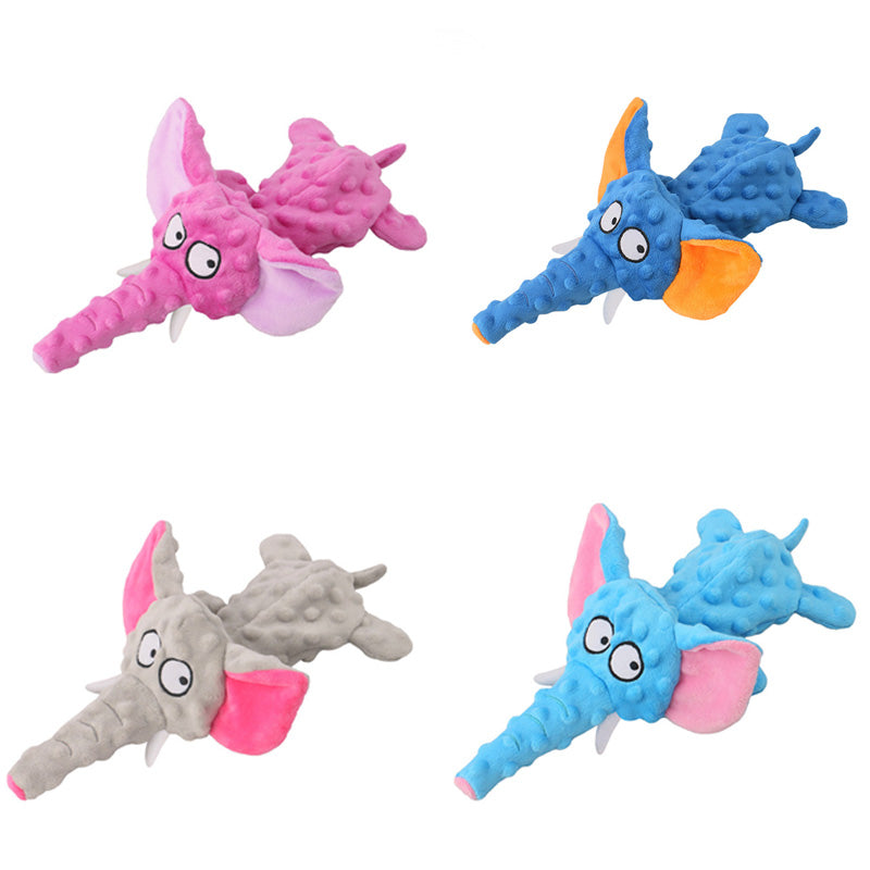 Avec quatre choix de couleurs, le bleu, le gris, le rose et le turquoise, vous pouvez choisir ce qui est adapté à votre chien. Quelle que soit la race de votre chien, petit ou grand, notre peluche en forme d’éléphant l'amusera. Avec sa facilité d’entretien, un lavage à la main suffit pour que le jouet reste propre.