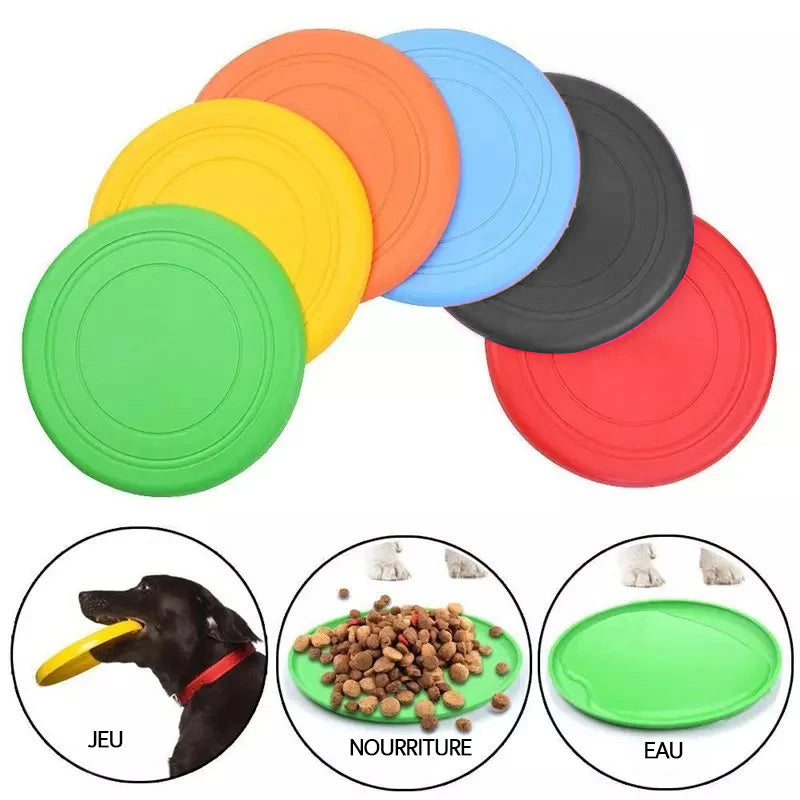 Notre frisbee pour chien indestructible est conçu pour être facile à attraper par votre chien. Il vole de manière aérodynamique et stable, ce qui assure la sécurité lorsque le chien le rattrape avec la gueule. Il est également fabriqué avec un matériau en TPR. C'est un matériau souple et durable, qui ne se déforme pas et ne se casse pas facilement. Vous pouvez aussi l’utiliser comme gamelle à eau et nourriture pour votre chien, en le retournant simplement.