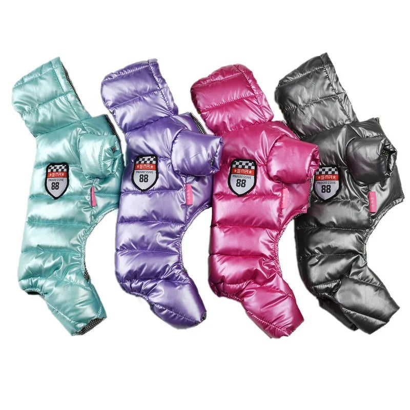 Notre manteau pour chien imperméable n’est pas seulement un accessoire pratique pour l'hiver, c’est aussi un vêtement qui s'adapte bien à la morphologie de votre chien. Effectivement, votre chien sera plus à l'aise en le portant avec ses quatre manches qui couvrent les pattes. Cela assure aussi une meilleure isolation thermique et permet à votre chien de bouger librement et de courir sans le gêner. Il est facile à enfiler et à enlever, grâce à la fermeture à pression.