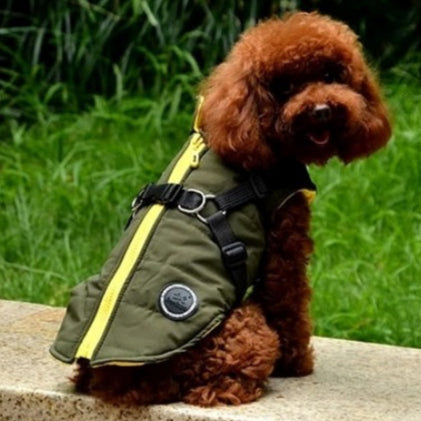 Les sangles robustes intégrées offrent un excellent maintien, évitant tout glissement pendant la marche. Parfait pour les chiens actifs, ce manteau harnais reste stable même lors des mouvements les plus vifs.