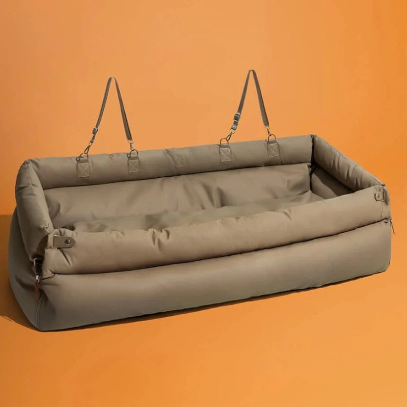 Offrez à votre compagnon à quatre pattes un espace de voyage aussi chic que rassurant avec notre panier de voiture en cuir vegan. Conçu pour s’intégrer parfaitement à la banquette arrière ou au siège avant, il enveloppe votre chien d’un confort moelleux tout en assurant sa sécurité pendant les trajets.