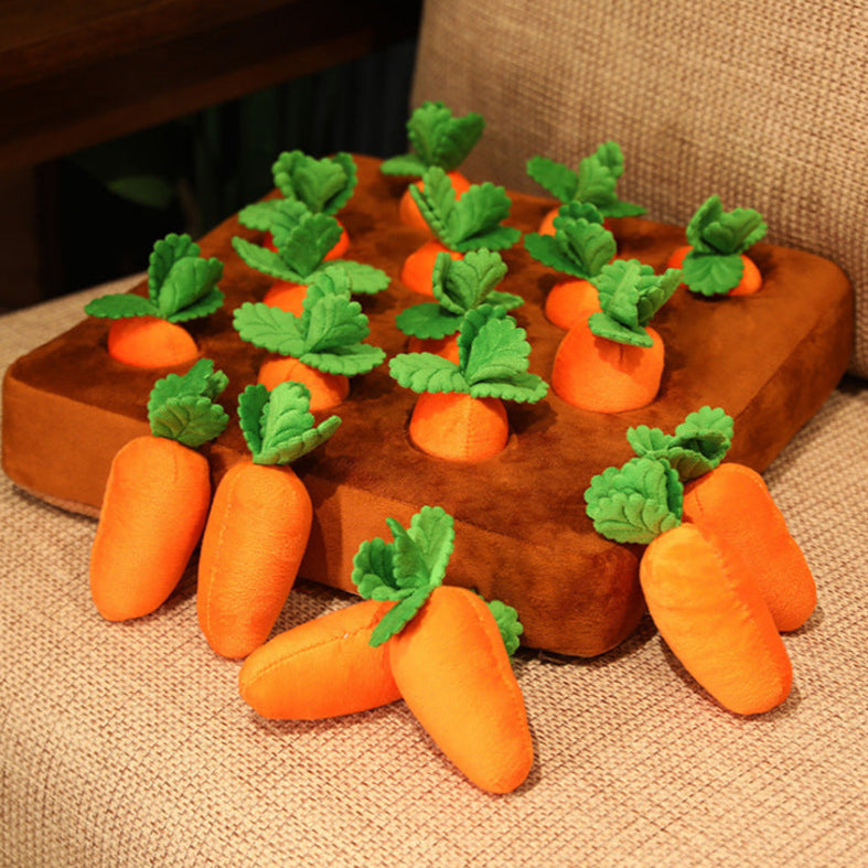 Notre peluche stimulante en forme de carottes transforme chaque moment de jeu en une véritable chasse au trésor. Votre chien va adorer fouiller, tirer et explorer pour déterrer ces carottes moelleuses dissimulées dans leur "potager".