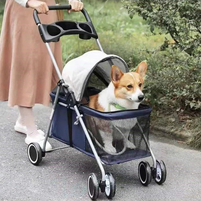 Vous aimeriez vous balader avec votre chien mais il lui arrive de fatiguer ? Peut-être votre chien est âgé ou a du mal à se déplacer ? C’est pour cela que l’on vous propose notre poussette pour chien comme accessoire de transport. L'intérieur de cette poussette est fait pour lui, c'est à la fois confortable et douillet pour que votre chien puisse se reposer et d'en profiter de la sortie en même temps.