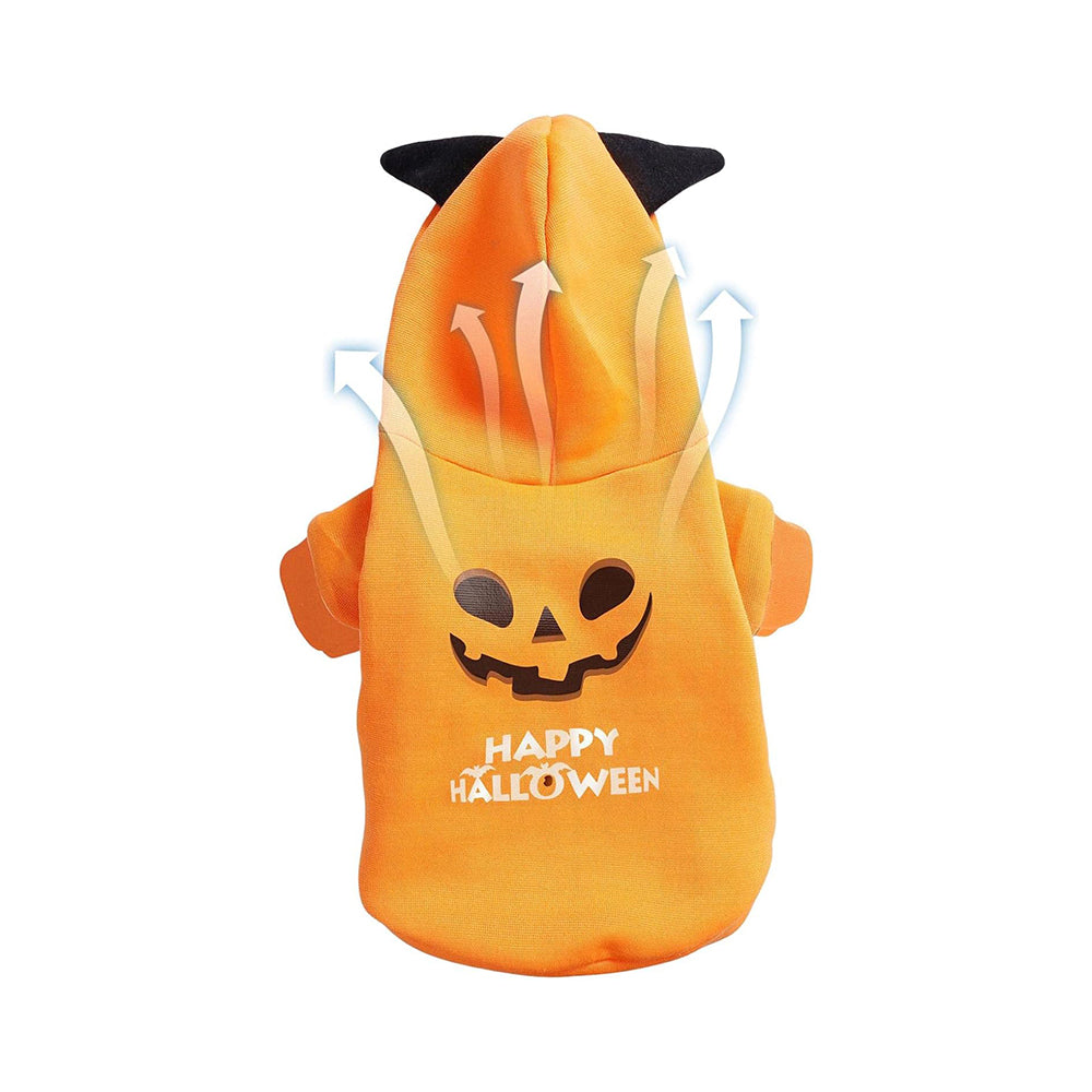 Choisissez parmi deux couleurs attrayantes et trois tailles pour un ajustement parfait. Que ce soit pour une sortie nocturne, une soirée déguisée ou tout simplement pour ajouter une touche festive à vos promenades, ce pull pour chien à capuche apportera une touche de magie d'Halloween à chaque sortie.