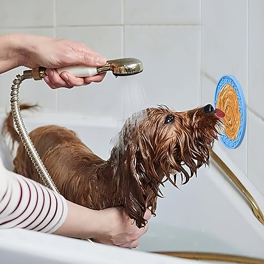 Sans aucun effort, ce tapis de léchage pour chien en silicone à ventouse peut facilement coller aux carreaux ou sur tous types de surfaces.