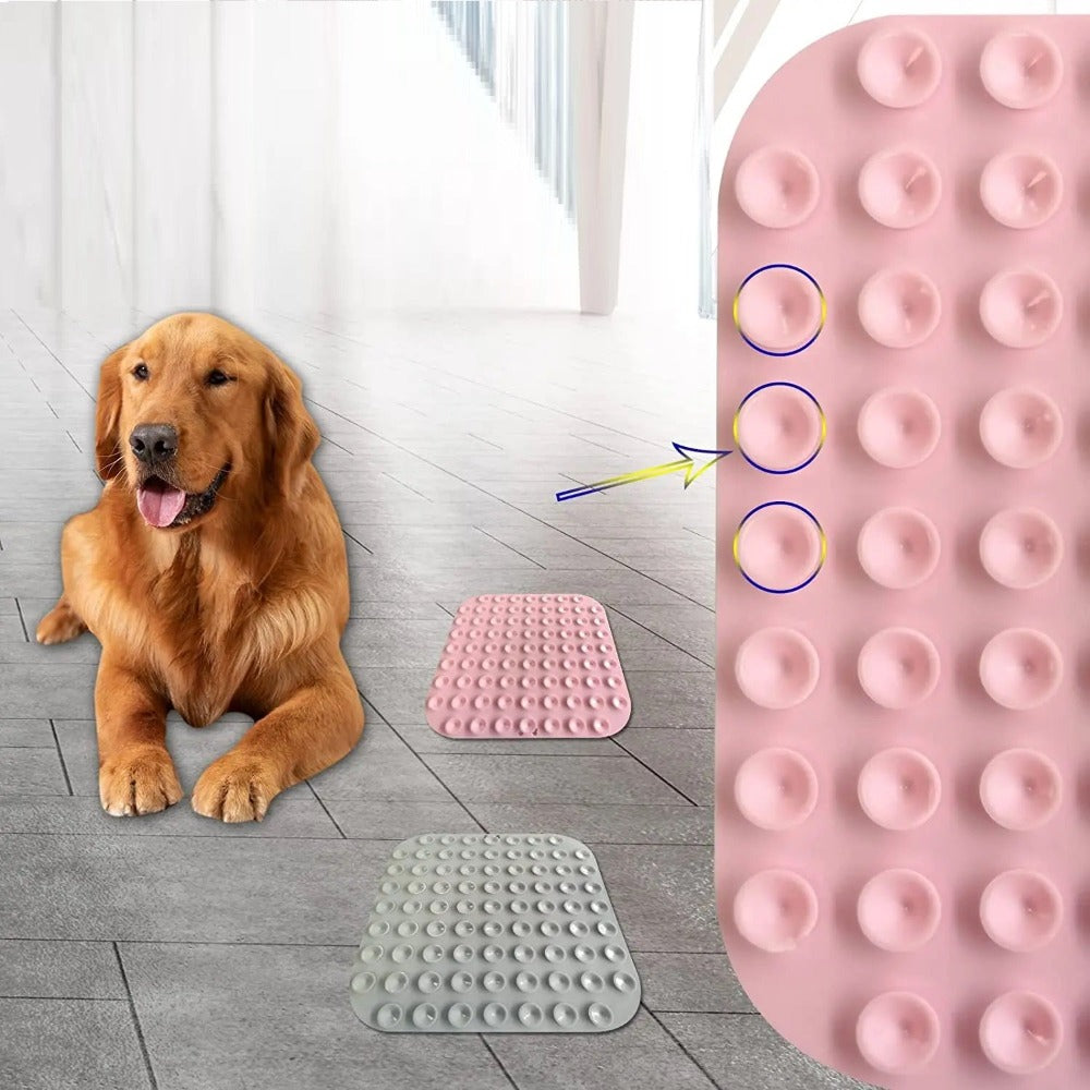 Ce tapis n’est pas seulement durable, il est aussi incroyablement facile à utiliser. Grâce aux ventouses intégrées, il peut être facilement accroché aux murs, offrant un divertissement pour vos animaux. Il suffit de tartiner la nourriture préférée de votre chien dessus pour le garder occupé en léchant la surface ayant les petites cavités.